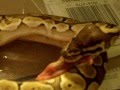 Isis, my CB '08 male Royal Python hatchling (Butter morph), having a snack!